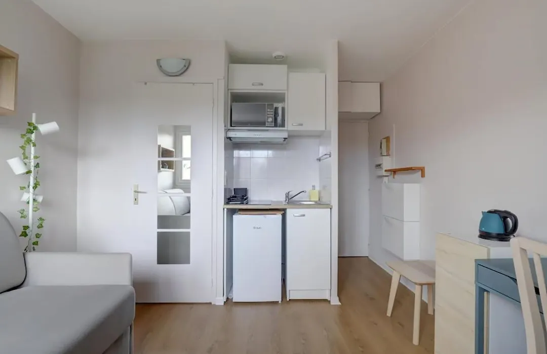 Durante la estancia en el Studio cosy calme de 14 m2 - Plein centre, los huéspedes pueden hacer uso de una pequeña cocina, que está equipada con una nevera y una estufa. El Studio cosy calme de 14 m2 - Plein centre está a tan solo 150 metros de la parada de autobús Busca y justo al lado de la estación de metro Saint Michel - Marcel Langer.
